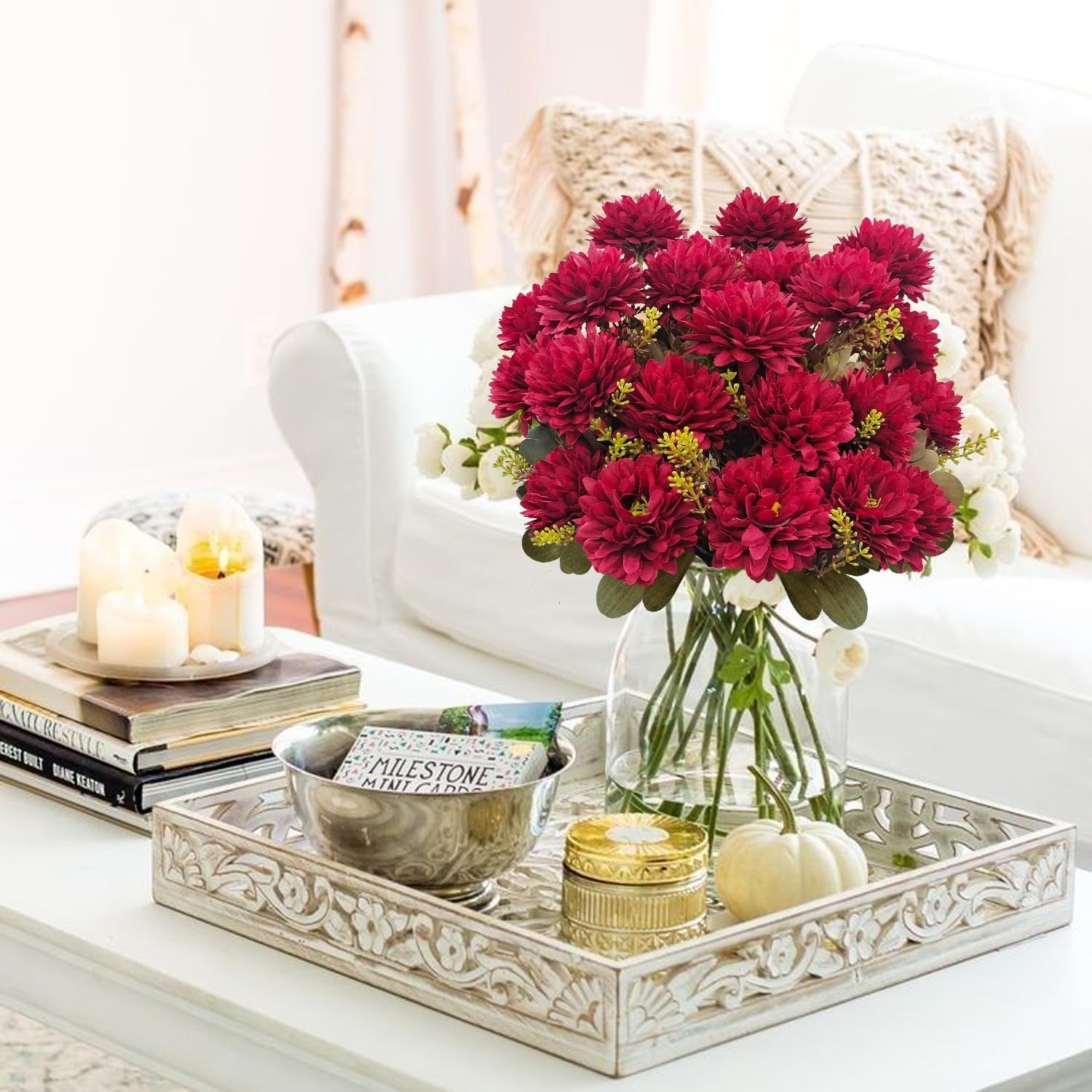 🌼 Lifelike Fall Color in Seconds:Dense silk petals and textured foliage create a plush globe that looks freshly cut. One pot instantly turns your porch, patio, or entry table into the focal point of the season.
